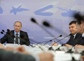 Prime Minister Vladimir Putin (left) during a meeting regarding the implementation of the state Weapon Programme for 2011-2020.