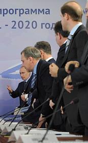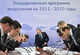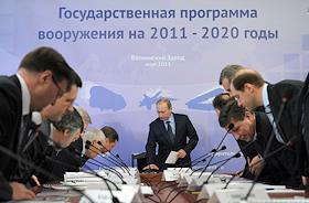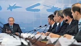 Prime Minister Vladimir Putin (centre) during a meeting regarding the implementation of the state Weapon Programme for 2011-2020.