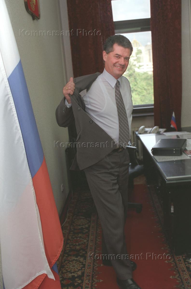 Chairman of the Russian Municipalities Congress Valery Kirpichnikov is interviewed in his office.