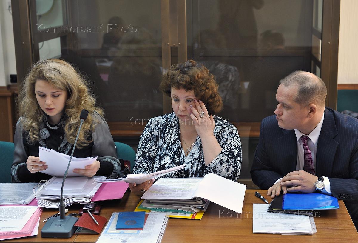 Слева направо: адвокат Валентина Бокарева, бывший руководитель отдела корпоративного управления крупнейшего в Казахстане БТА банка Вероника Ефимова, обвиняемая по делу о махинациях с кредитами на 4 миллиарда долларов, и адвокат Сергей Бровченко во время рассмотрения дела об экстрадиции Вероники Ефимовой в Казахстан. Заседание прошло в Московском городском суде.