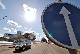 Дорожные знаки на Сколковском шоссе.