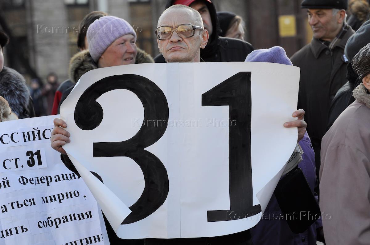 Участники митинга в защиту 31-й статьи Конституции. Митинг прошел на площади Ленина.