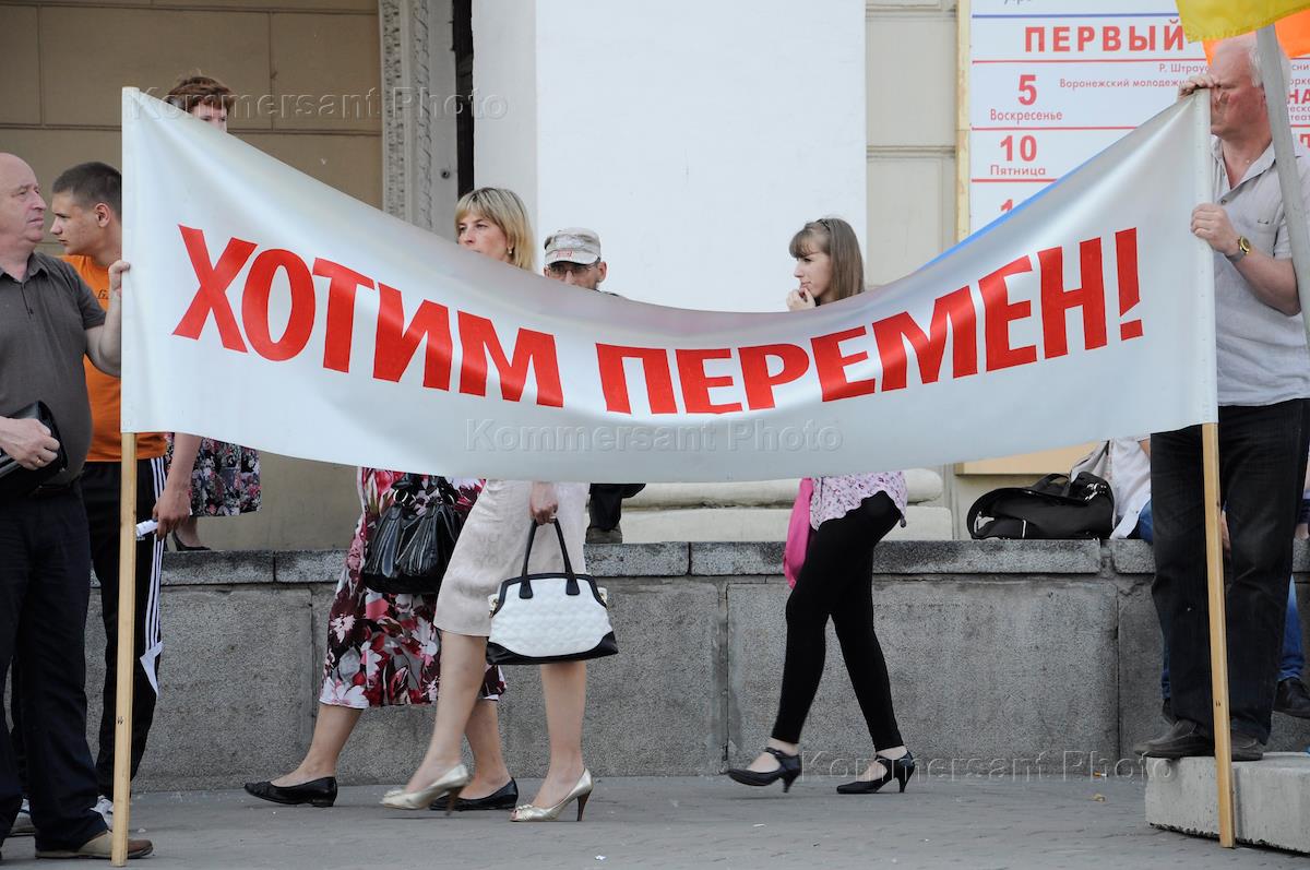 Пикет с требованием отставки председателя воронежского Облизбиркома и председателя Центризбиркома России прошел у Театра оперы и балета. Надпись на растяжке: "Россия за демократию! Против диктатуры нищеты и бесправия!".