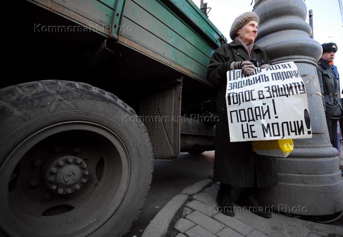 Участница акции "Стратегии-31" в защиту 31-й статьи Конституции на Триумфальной площади.