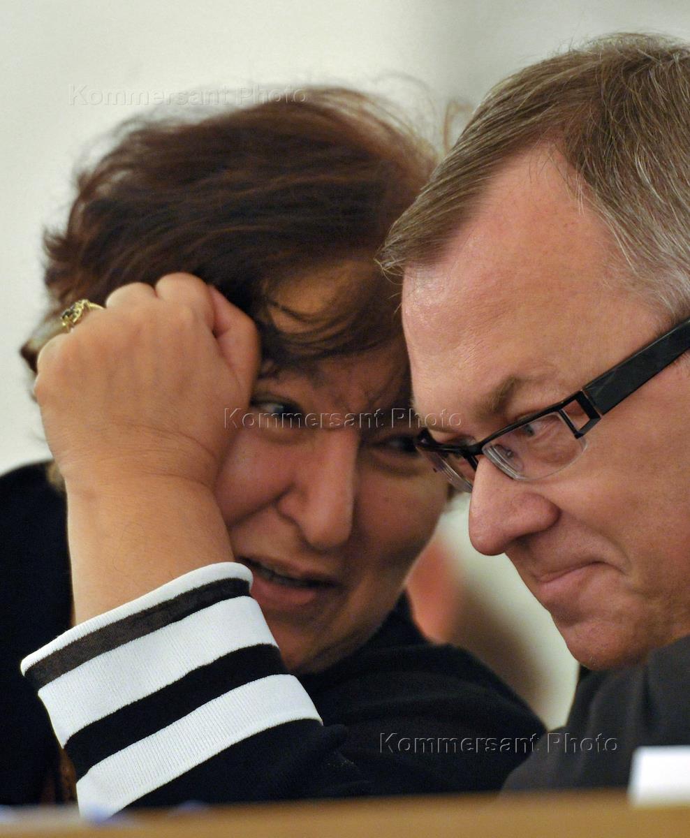 Заместитель председателя правления Сбербанка России Белла Златкис (слева) и президент, председатель правления "ВТБ Банк" Андрей Костин (справа) на XXII съезде Ассоциации российских банков "Вызов десятилетия: качество и доступность банковских услуг". Съезд прошел в Колонном зале Дома Союзов.