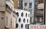Виды Москвы. Дом архитектора Константина Мельникова в Кривоарбатском переулке. Дорожный знак "Остановка запрещена".