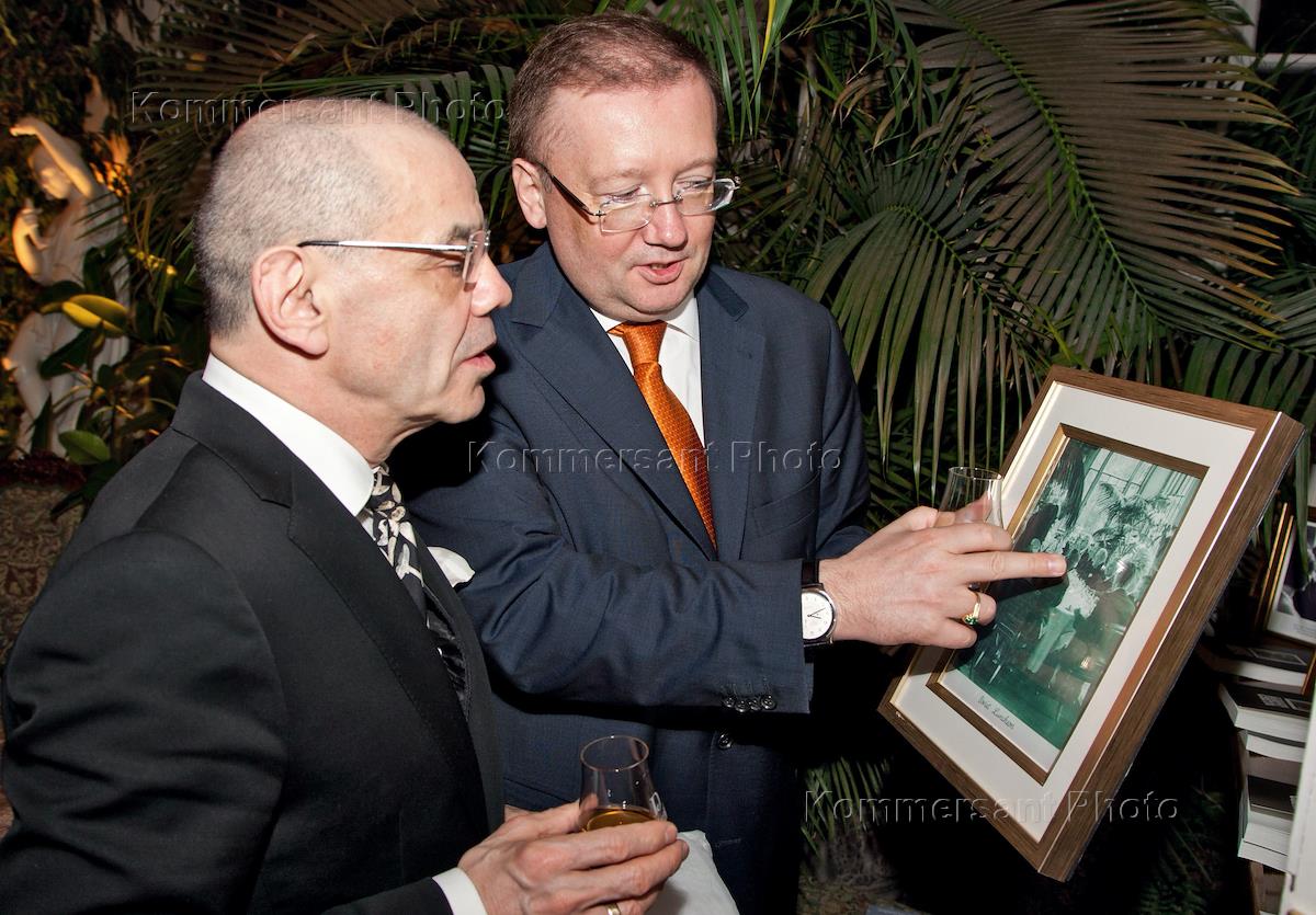 Художественный руководитель Театра "Сатирикон" Константин Райкин (слева) и посол России в Великобритании Александр Яковенко (справа) на Литературных чтениях и дегустации виски "Dewar’s" в резиденции российского посла в Лондоне.