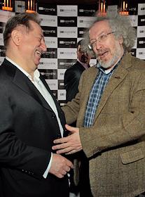 Генеральный директор холдинга "Объединенные медиа" Михаил Бергер (слева) и главный редактор радиостанции "Эхо Москвы" Алексей Венедиктов (справа) во время празднования четвертого дня рождения радиостанции "Бизнес FM" в клубе "Imperia Lounge".