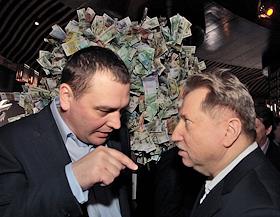 Генеральный директор холдинга "Объединенные медиа" Михаил Бергер (справа) во время празднования четвертого дня рождения радиостанции "Бизнес FM" в клубе "Imperia Lounge".