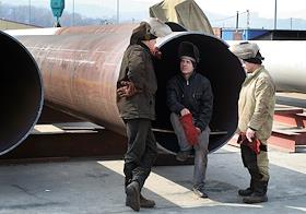 Генеральный директор ЗАО "ТМК" Виктор Гребнев на осмотре участка строительства низководного моста через Амурский залив скоростной магистрали "пос. Новый – Де-Фриз – Седанка – Патрокл", строящейся в рамках подготовки к саммиту АТЭС-2012.