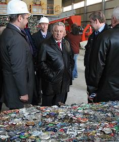 Полномочный представитель президента России в Дальневосточном федеральном округе (ДВФО) Виктор Ишаев (в центре) и губернатор Приморского края Сергей Дарькин (справа) во время посещения полигона твердых бытовых отходов, который действует с соблюдением всех существующих экологических норм и правил.