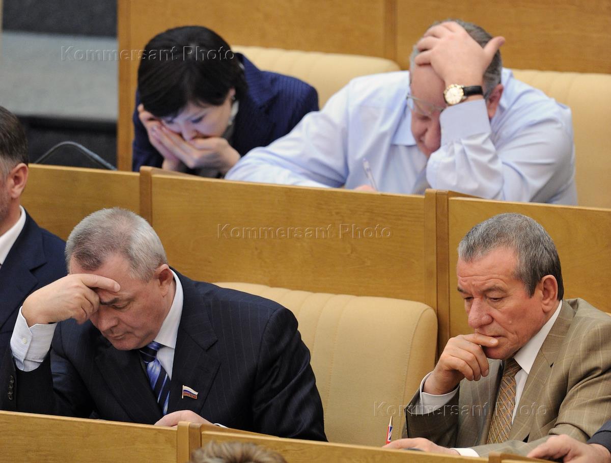 Депутаты во время пленарного заседание Государственной Думы России, на котором выступил председатель правительства России Владимир Путин с отчетом о работе правительства в 2010 году.