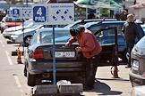 Автомобильный рынок в Ждановичах. Автовладелец заделывает царапины на машине.