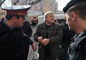 Николай Савельев-старший, подозреваемый в похищении сына главы "Лаборатории Касперского" Ивана Касперского перед началом рассмотрения ходатайства на арест в Пресненском районном суде.