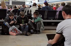 Жанровая фотография. Пассажиры в зале ожидания Ленинградского вокзала.