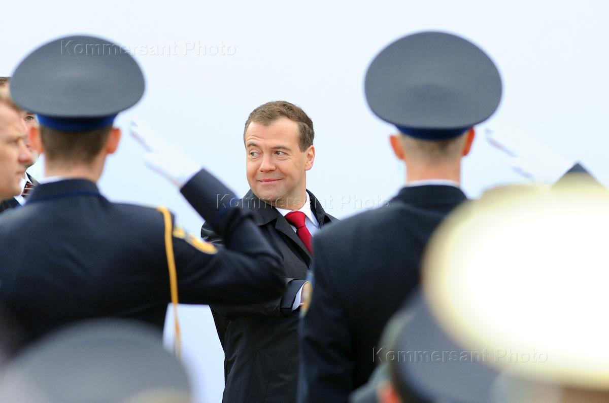 Президент России Дмитрий Медведев после Военного парада на Красной площади, посвященного 66-й годовщине Победы в Великой Отечественной войне.