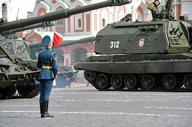 Колонна военной техники на Красной площади во время Военного парада, посвященного 66-й годовщине Победы в Великой Отечественной войне.