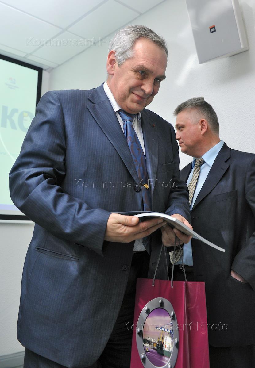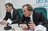 Генеральный директор открытого акционерного общества "Центральный научно-исследовательский институт "Курс" Лев Клячко (слева) во время пресс-конференции на тему "II Международный форум "Морская индустрия России". Пресс-конференция прошла в агентстве "Интерфакс".