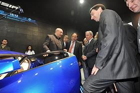 Выставка "Связьэкспокомм 2011" в центральном выставочном комплексе (ЦВК) "Экспоцентр". Слева направо: президент Marussia Motors Николай Фоменко, заместитель генерального секретаря Международного союза электросвязи Хоулин Джао, министр связи и информационных технологий Азербайджана Али Аббасов и министр связи и массовых коммуникаций России Игорь Щеголев у стенда автомобиля "Marussia".