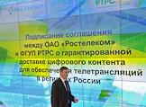 Генеральный директор Российской телевизионной и радиовещательной сети (РТСР) Андрей Романченко (слева), президент, председатель правления ОАО "Ростелеком" Александр Провоторов (в центре) и министр связи и массовых коммуникаций России Игорь Щеголев (стоит слева) на церемонии открытия выставки "Связьэкспокомм 2011" в центральном выставочном комплексе (ЦВК) "Экспоцентр".