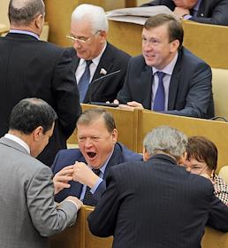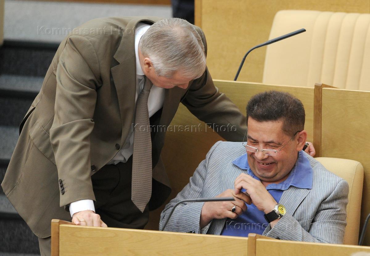 Депутат Государственной думы России, певец Николай Расторгуев (справа) во время думского заседания.