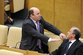 Член Комитета Государственной думы России по энергетике Георгий Леонтьев (слева) во время думского заседания.