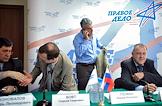 Сопредседатели партии "Правое дело" журналист Георгий Бовт (слева) и директор по гуманитарным проектам корпорации Роснано Леонид Гозман (в центре) во время заседания Федерального политсовета партии "Правое дело" в офисе партии.
