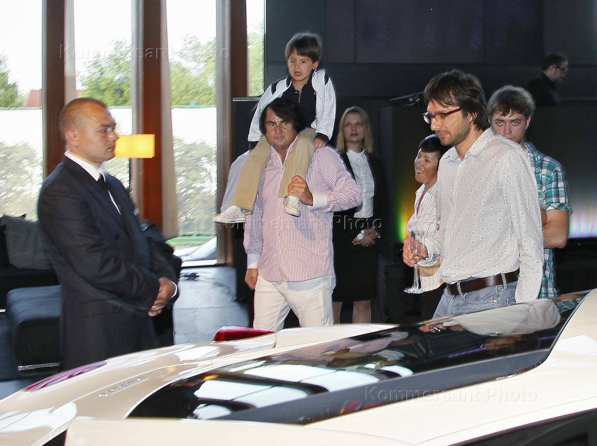 Уравляющий партнер юридической компании Legal Intelligence Group Максим Викторов (в центре) на российской премьере полноприводной модели Ferrari FF в концертном зале "Барвиха Luxury Village".