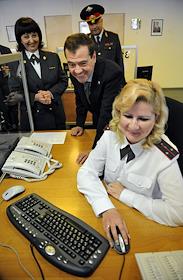 Президент России Дмитрий Медведев во время посещения главного управления МВД России по Москве.