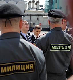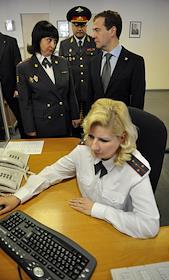 Президент России Дмитрий Медведев во время посещения главного управления МВД России по Москве.