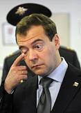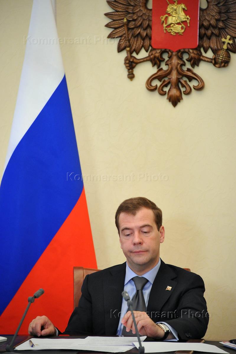 Президент России Дмитрий Медведев во время совещания по вопросам противодействия экстремизму в России. Совещание прошло в главном управлении МВД России по Москве.