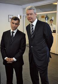 Министр внутренних дел России Рашид Нургалиев (слева) и мэр Москвы Сергей Собянин (справа) во время посещения главного управления МВД России по Москве.
