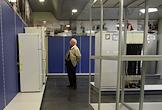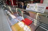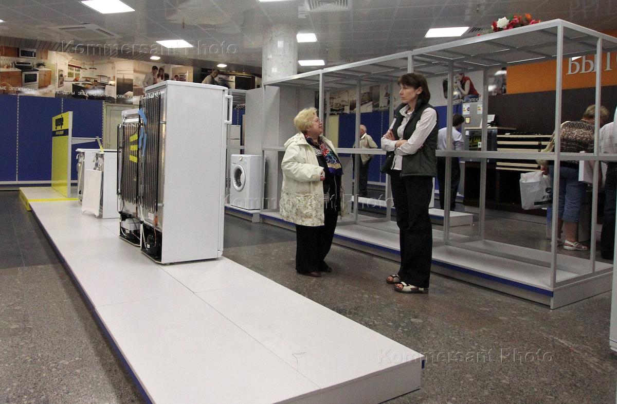 Пустые полки в отделе электотоваров торгового центра в разгар финансового кризиса в Белоруссии.