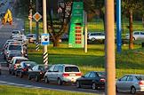 Очередь автомобилей на заправку накануне подорожания цен на топливо.