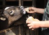 Кормление телят в личном хозяйстве в деревне Виноградовка Липецкой области.