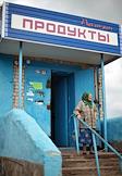 Местная жительница у магазина "Продукты" в деревне Виноградовка Липецкой области.