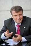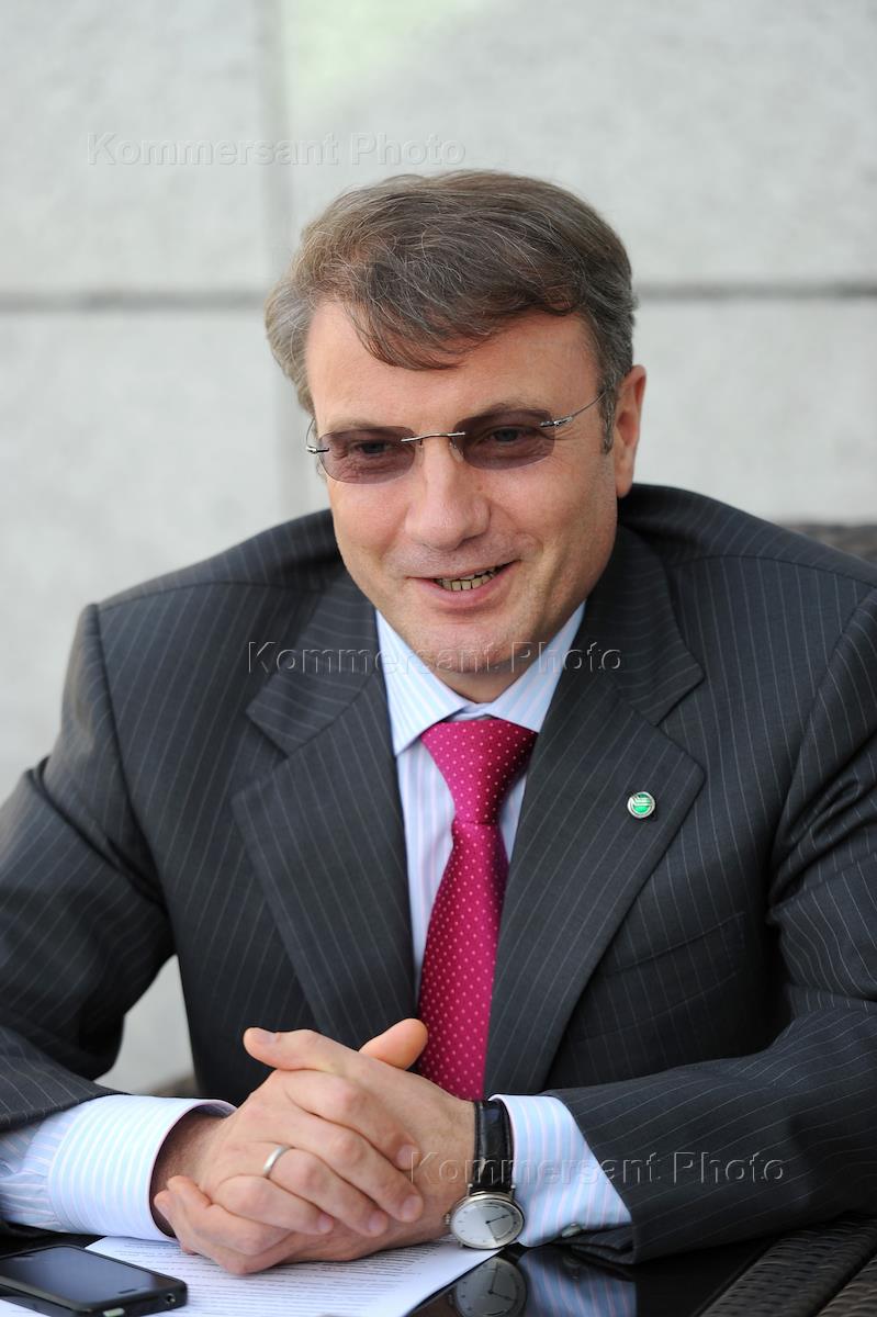 Глава Сбербанка России Герман Греф во время интервью в офисе Сбербанка.