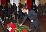 Президент России Дмитрий Медведев на церемонии прощания с президентом Абхазии Сергеем Багапшем в культурном центре Вооруженных сил России.