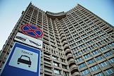 Жанровая фотография. Дорожный знак "Такси" на фоне высотного здания.