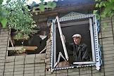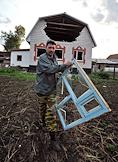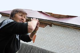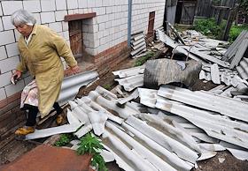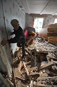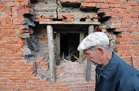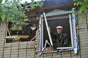 Последствия взрывов на складах 102-го арсенала артиллерийских боеприпасов Центрального военного округа в селе Пугачево (28 км от Ижевска). Местный житель у разрушенного дома.
