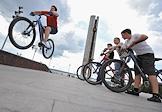 Жанровая фотография. Подростки катаются на велосипедах.