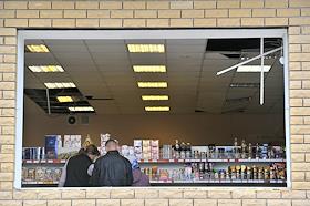 Последствия взрывов на складах 102-го арсенала артиллерийских боеприпасов Центрального военного округа в селе Пугачево (28 км от Ижевска). Разбитая витрина магазина.