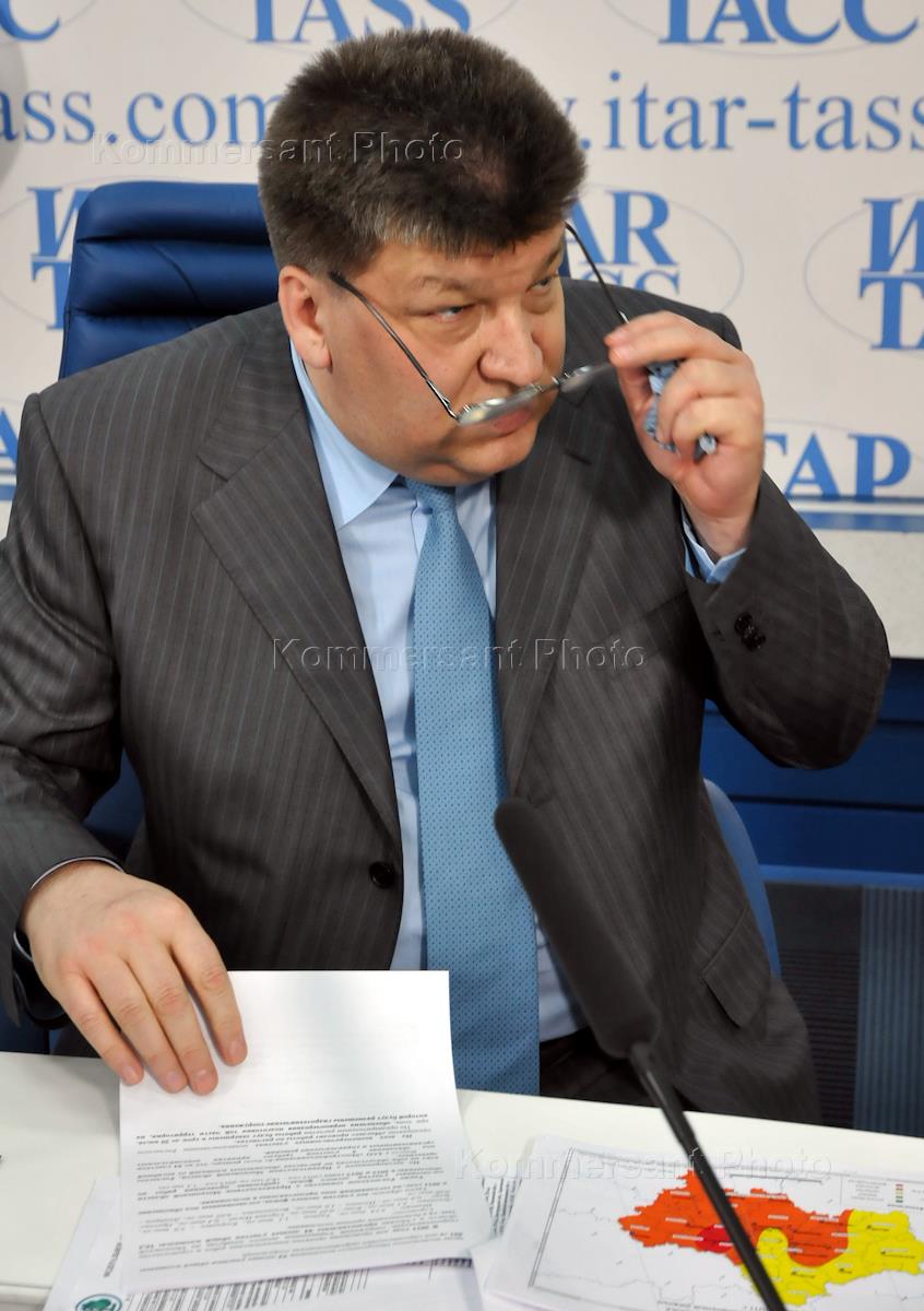 Глава Федерального агентства лесного хозяйства России Виктор Масляков во время пресс-конфереции на тему: "Как справляются регионы с лесными пожарами в этом году. Итоги весенней кампании 2011 года". Пресс-конференция прошла в агентстве ИТАР-ТАСС.