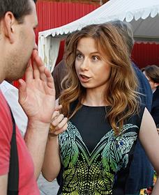 Актер Кирилл Саонов (слева) и участница группы "Фабрика" Катя Ли (справа) Russian Fashion Raising в "Императорском яхт-клубе" на "Красном Октябре".