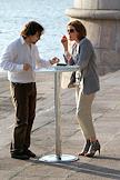 Руководитель проекта "Банки ТВ" Елена Ищеева (справа) во время презентации нового проекта Russian Fashion Racing. Презентация прошла в Имперском яхт-клубе на Красном октябре.