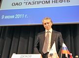 Годовое собрание акционеров ОАО "Газпром нефть". Член Заместитель генерального директора по разведке и добыче ОАО "Газпром нефть" Борис Зильберминц в президиуме собрания.