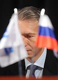 Годовое собрание акционеров ОАО "Газпром нефть". Член правления, заместитель генерального директора по корпоративным коммуникациям ОАО "Газпром нефть" Александр Дыбаль в президиуме собрания.