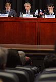 Годовое собрание акционеров ОАО "Газпром нефть". Слева направо: заместитель председателя правления ОАО "Газпром нефть" Вадим Яковлев, председатель правления ОАО "Газпром нефть" Александр Дюков и заместитель генерального директора по разведке и добыче ОАО "Газпром нефть" Борис Зильберминц в президиуме собрания.