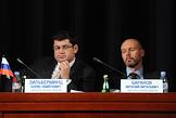 Годовое собрание акционеров ОАО "Газпром нефть". Заместитель генерального директора по разведке и добыче ОАО "Газпром нефть" Борис Зильберминц (слева) и заместитель Председателя Правления, Заместитель генерального директора по организационным вопросам ОАО "Газпром нефть" Виталий Баранов (справа) в президиуме собрания.