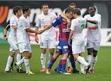 Чемпионат России по футболу. 13 тур. Футболисты Кейсуке Хонда (слева) и Роберто Карлос да Силв (справа) во время матча между командами ЦСКА (Москва) - "Анжи" (Махачкала) на стадионе "Арена Химки".